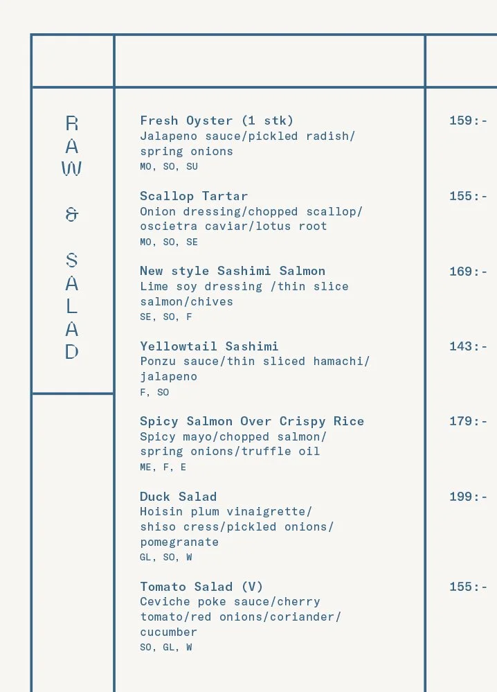 As a tribute to Japanese aestetics, WeOslo developed an identity combining Asian tradition with Scandinavian minimalism. Exploring the similarities between these two cultures, the identity celebrates simplicity and craftmanship. The strict pattern and vertical typography provides Sabaki with a scalable and recognizable identity, translating Japan into Norwegian.